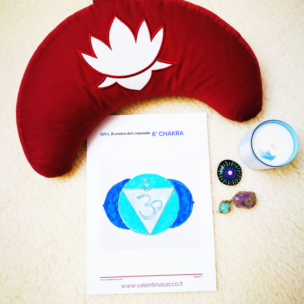 La Sesta Lezione è su Ajna, tradotto: Il terzo occhio, la visione. In questa lezione condivisa attraverso un link al PDF che contiene i Pulsanti collegati ai materiali troverai: il Video sulle caratteristiche del 6° Chakra; il PDF delle slide; la Visualizzazione per il 6° chakra; il Màndala corrispondente da colorare e infine il Workbook con gli esercizi correlati alla tematica dell’ Immaginazione e i suggerimenti per riequilibrare il chakra, oltre che la scheda di autovalutazione. E' il secondo dei 3 chakra superiori che non sono più importanti e si formano temporalmente dopo quelli legati agli aspetti primari grazie ai quali poi si può “volare” e arrivare alla massima realizzazione e integrazione degli ultimi tre.